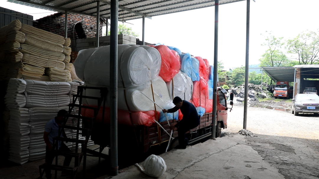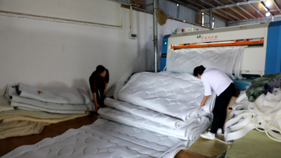 “我们的产品会送到成品厂,然后再加工,加工床垫以后送往东南亚那边出口。”富权床垫加工厂负责人李平介绍道。