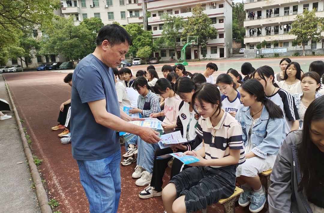 5月16日,永兴县司法局马田司法所、永兴县戒毒康复工作站联合开展普法宣传活动,为即将中考的学生送上满满的“法治武器”。