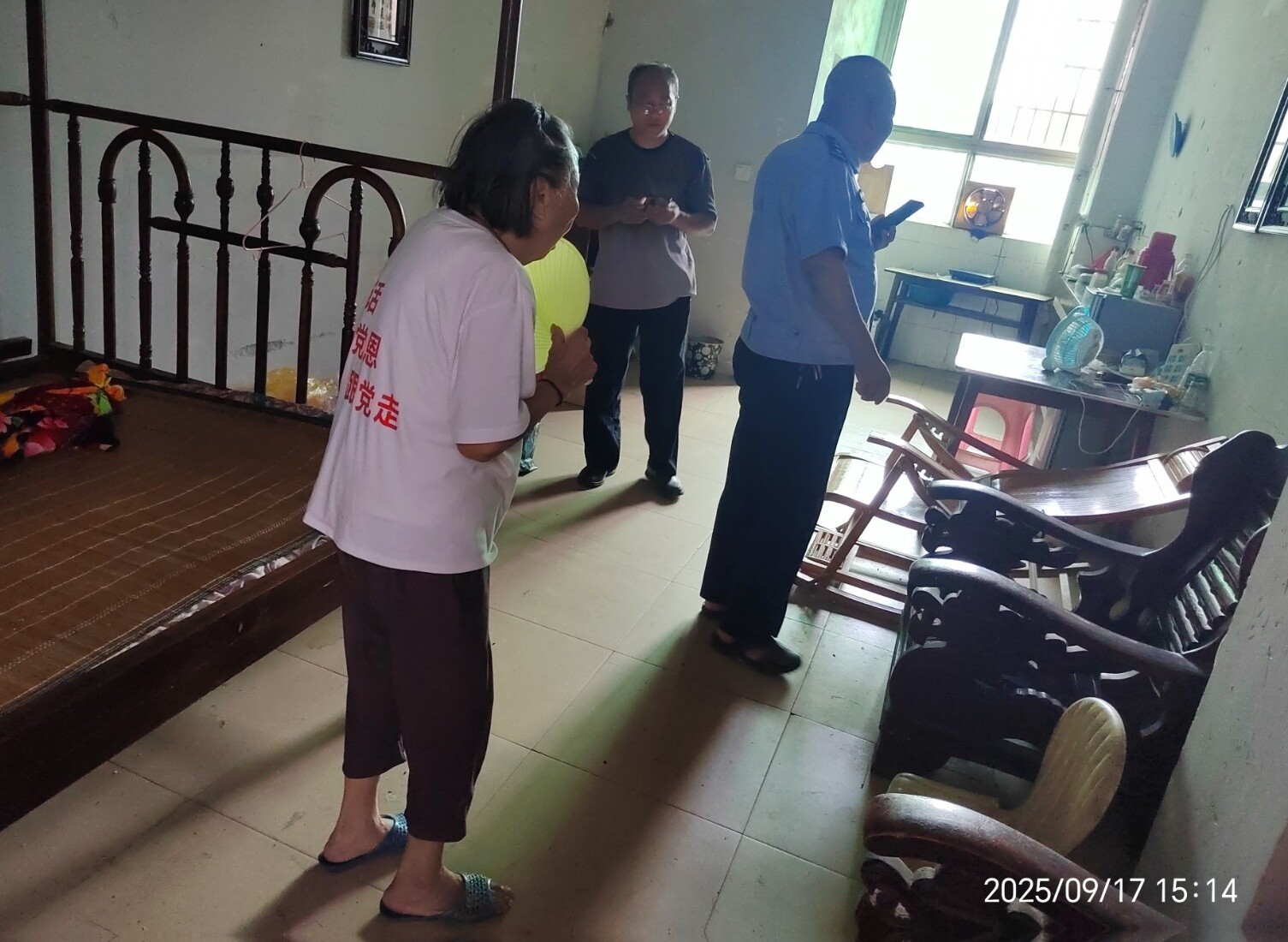 湖南日报·新湖南客户端9月19日讯(通讯员 许志言 刘 立)近日,居住在永兴县便江街道坳头上社区一名年逾八旬的蒋姓老奶奶外出时不慎迷路,幸得社区干部刘立和社区民警李波、廖曙杰几经周折、好心相助,最终平安回到家人身边。