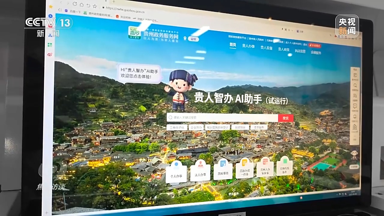 在贵阳市政府服务大厅里,一家药店负责人吴艳来办理药品经营许可证变更服务。她没有取号也不需要排队,一款叫“贵人智办”的AI助手会直接为她服务。仅用了6分钟,吴艳就办完了业务。