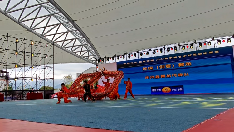 由永兴县农业农村局牵头组建的永兴县传统舞龙代表队凭借精湛技艺和精彩表现,荣获本届争霸赛三等奖。