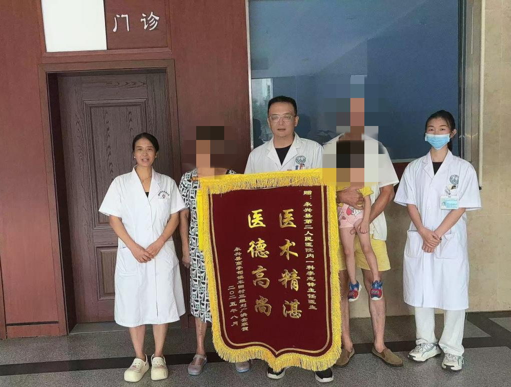 出院后,因康复需随家人长期定居广州,邓女士送锦旗的心愿一拖就是两年。但这份感恩从未被时间冲淡,近日,她专程从广州返回老家,第一站便直奔永兴县第二人民医院,只为兑现这份迟到的感谢。