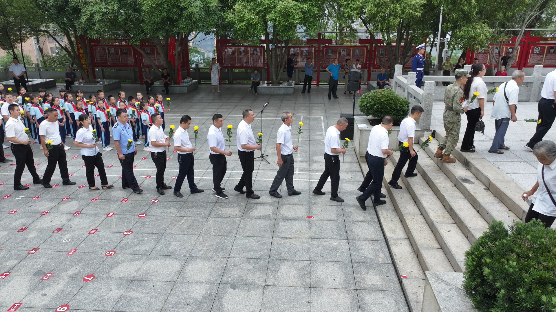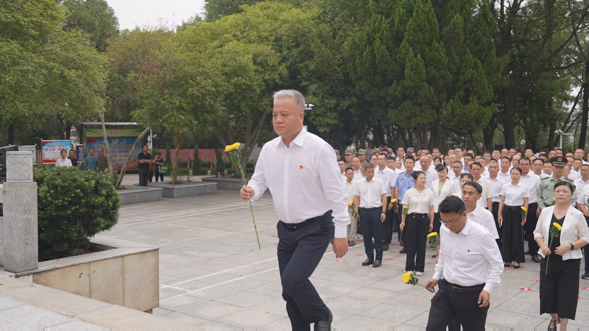 随后,县领导和各界代表依次走到烈士纪念碑前敬献鲜花,缓步绕行一周,深切缅怀革命先烈的丰功伟绩,汲取奋进力量。