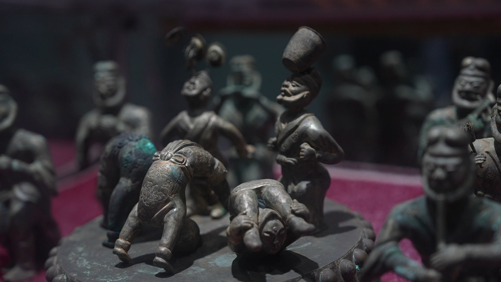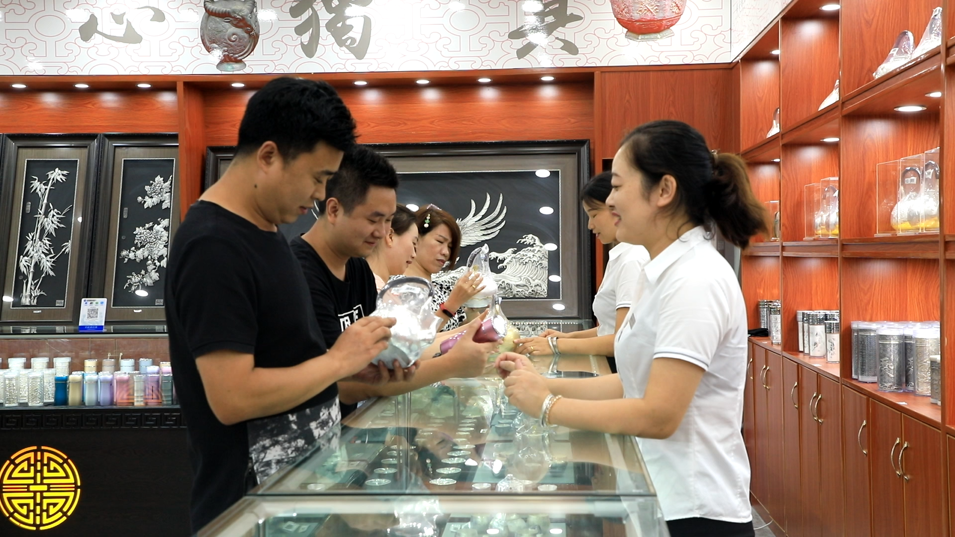 中国白银文化坊景区讲解员李秋香:“这一套是我们的镇馆之宝,唐朝时期的奏乐俑。银匠师傅通过掐花錾刻等工艺,千锤百炼而成,给我们客人展示了唐朝时期人民安居乐业,歌舞升平的一个景象。”