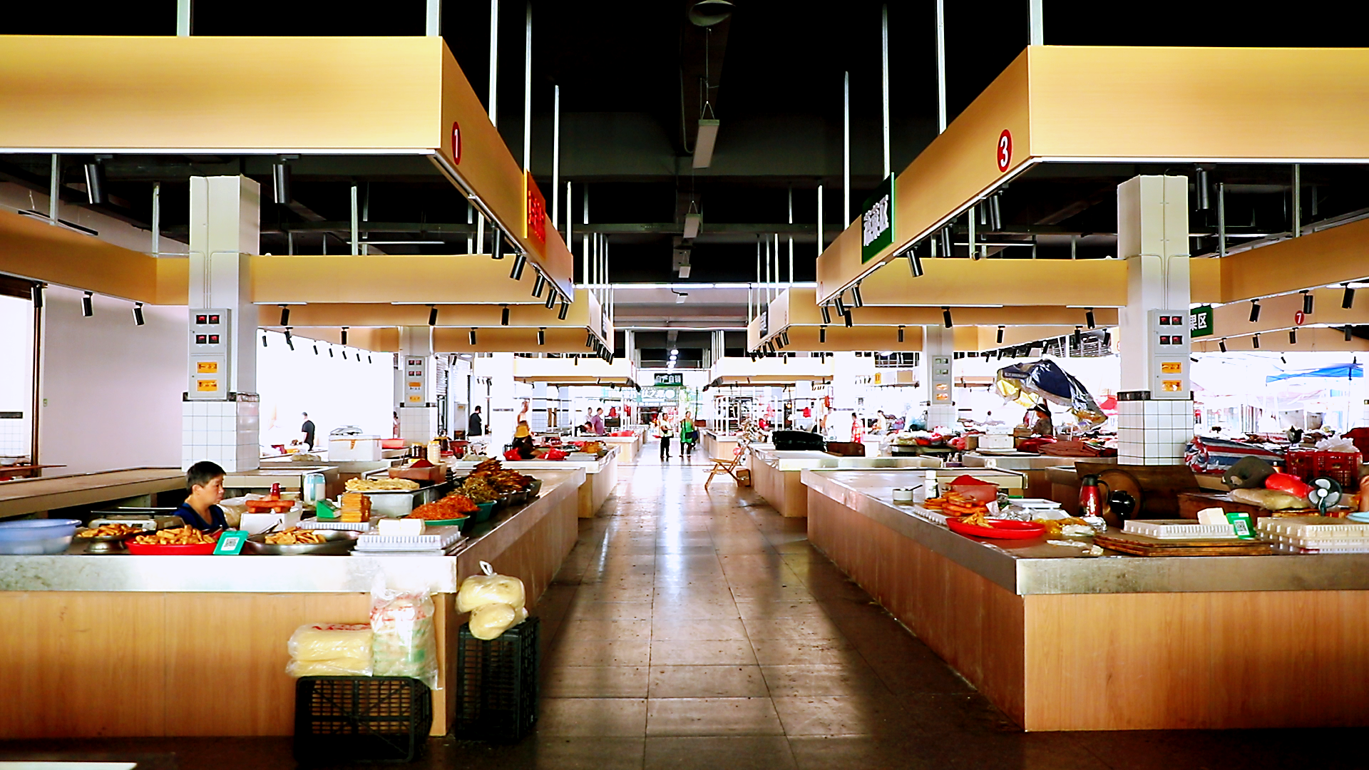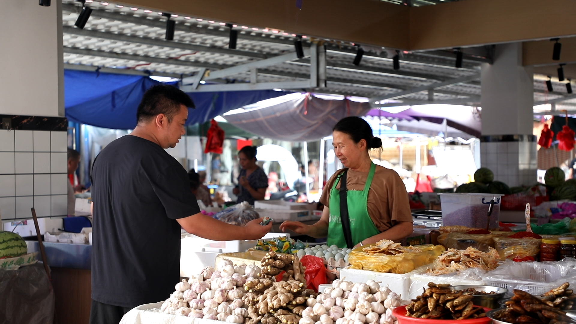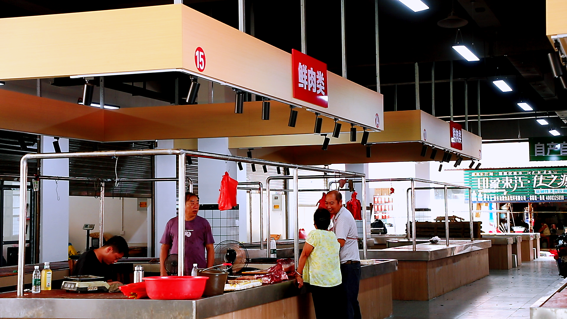 县城关农贸市场商家牛桂春:“市场卫生条件改善了,管理规范了,顾客自然愿意来消费了。”