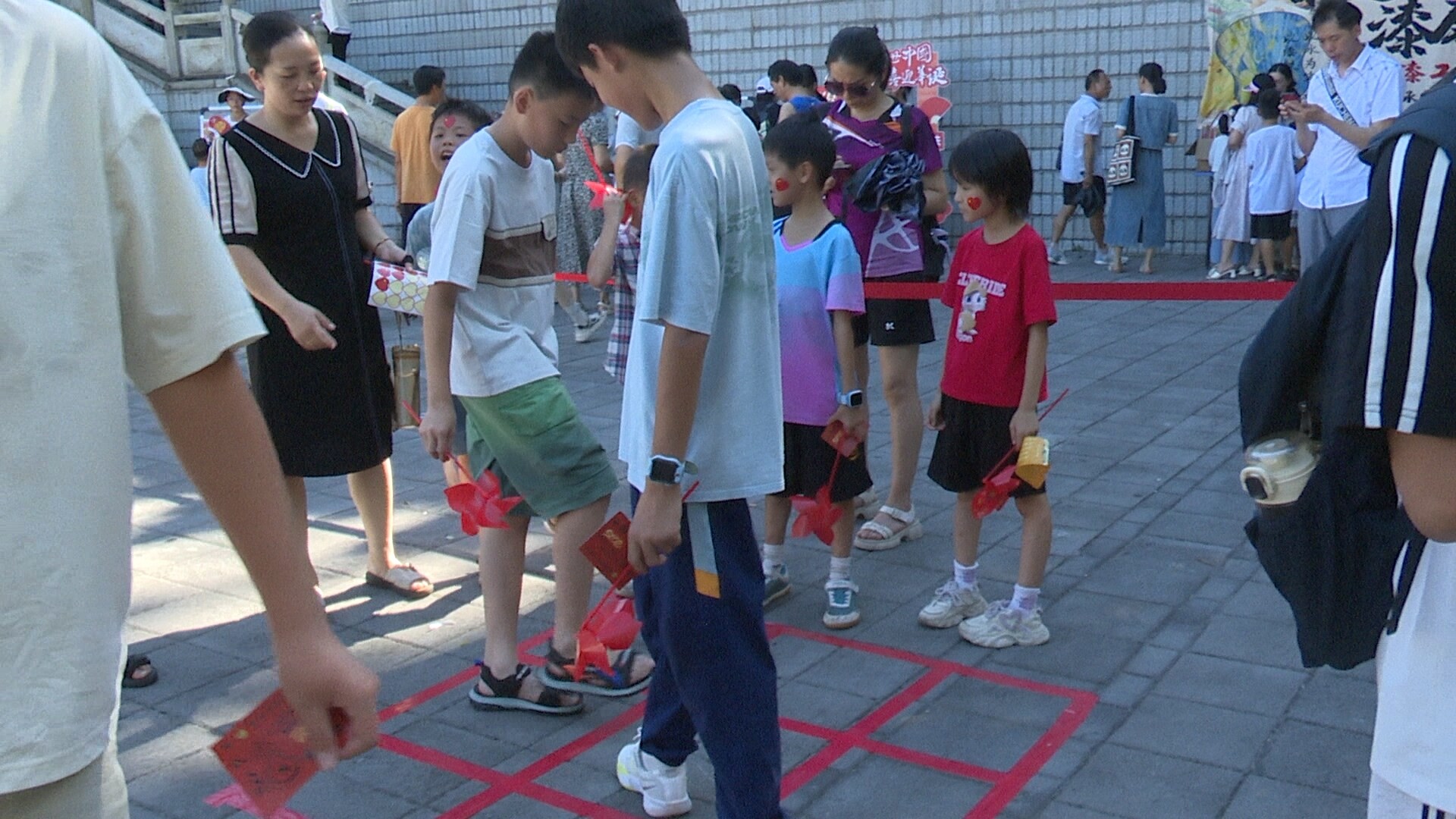 活动现场,悬挂了上百条圆球谜题,内容涵盖国庆历史、中秋民俗及永兴本土文化知识,在益智游戏环节中,雄鹰展翅、月球漫步、沙包接力不但需要亲子团队协作与平衡,更是对参与者体力的考验。