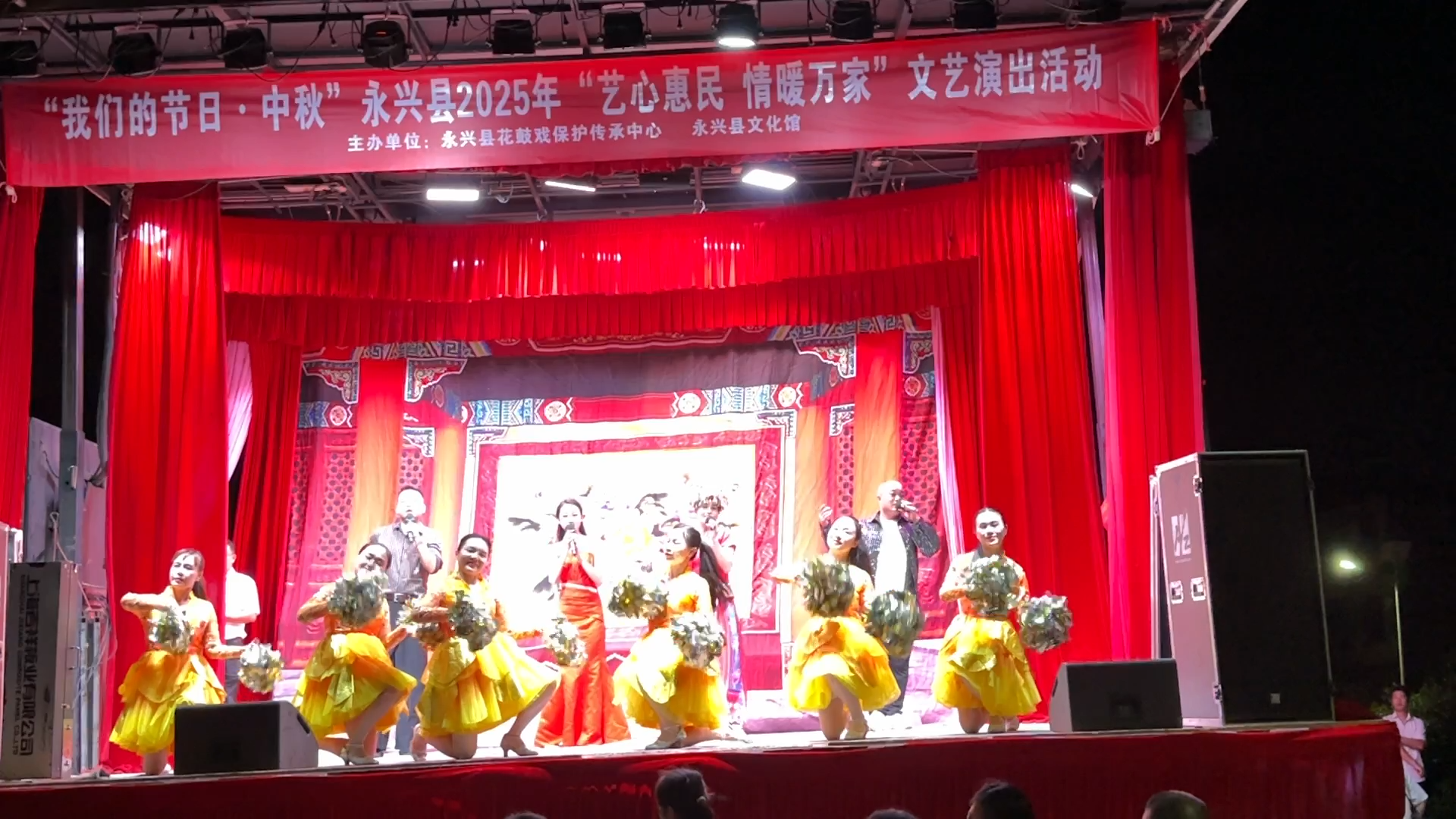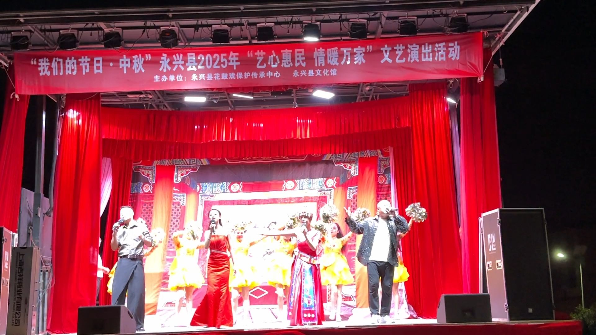 湖南日报·新湖南客户端10月7日讯(通讯员 李云香)10月6日晚,永兴县花鼓戏保护传承中心联合县文化馆走进马田镇李家村,以“桂香漫村落,文艺暖中秋”为主题,为当地村民送上一场充满传统韵味的文化盛宴。