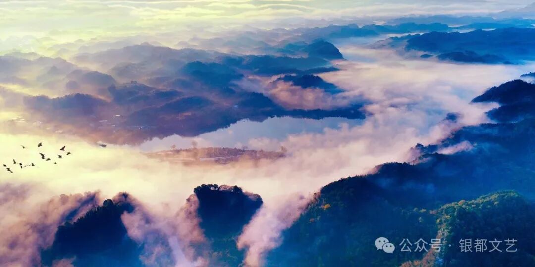 ▲作品名称:日出大湖仙(AI制作) 作品作者:曹健峰