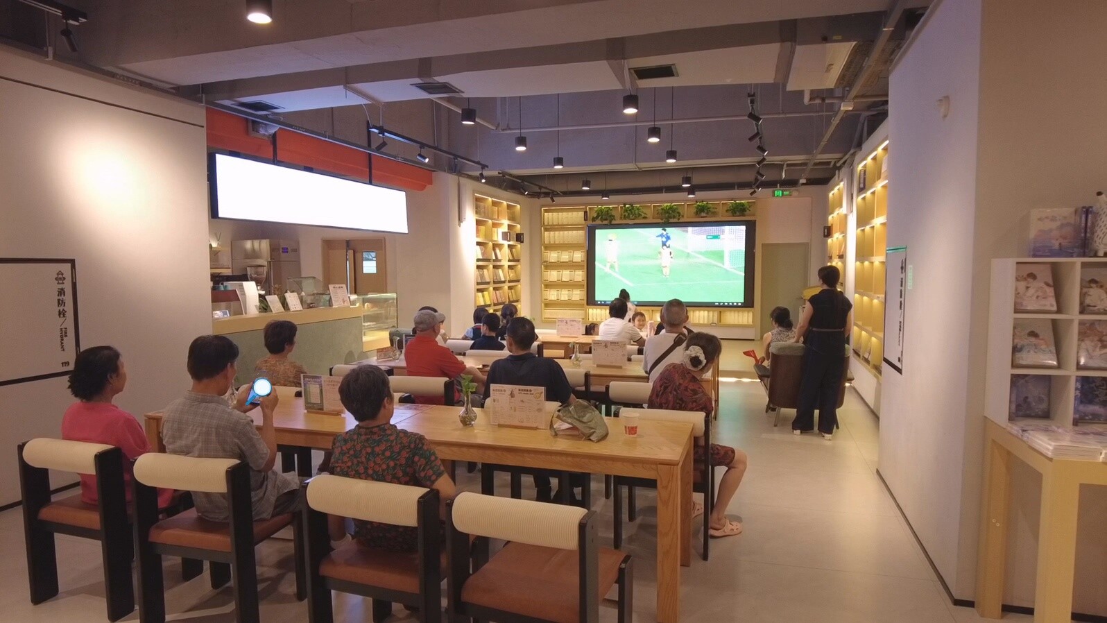 比赛当晚,乐之书店的观赛点已坐满了球迷。店员早早调试好设备,确保信号通畅,为球迷直播湘超联赛第五轮郴州主场对阵张家界的精彩赛事。大屏幕上,每一次进攻都牵动着现场观众的视线。