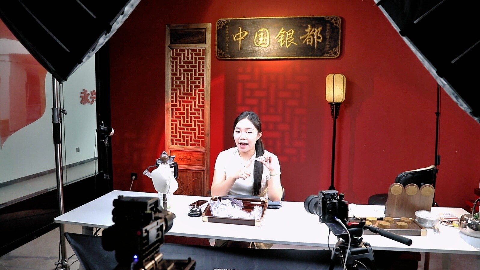 在线下销售火热的同时,线上电商平台的交易也在持续升温。在中国银都电商基地,主播们正在直播销售银条、银质饰品等。负责人告诉记者,自白银价格上涨以来,公司的银条、银锭等产品也是供不应求。