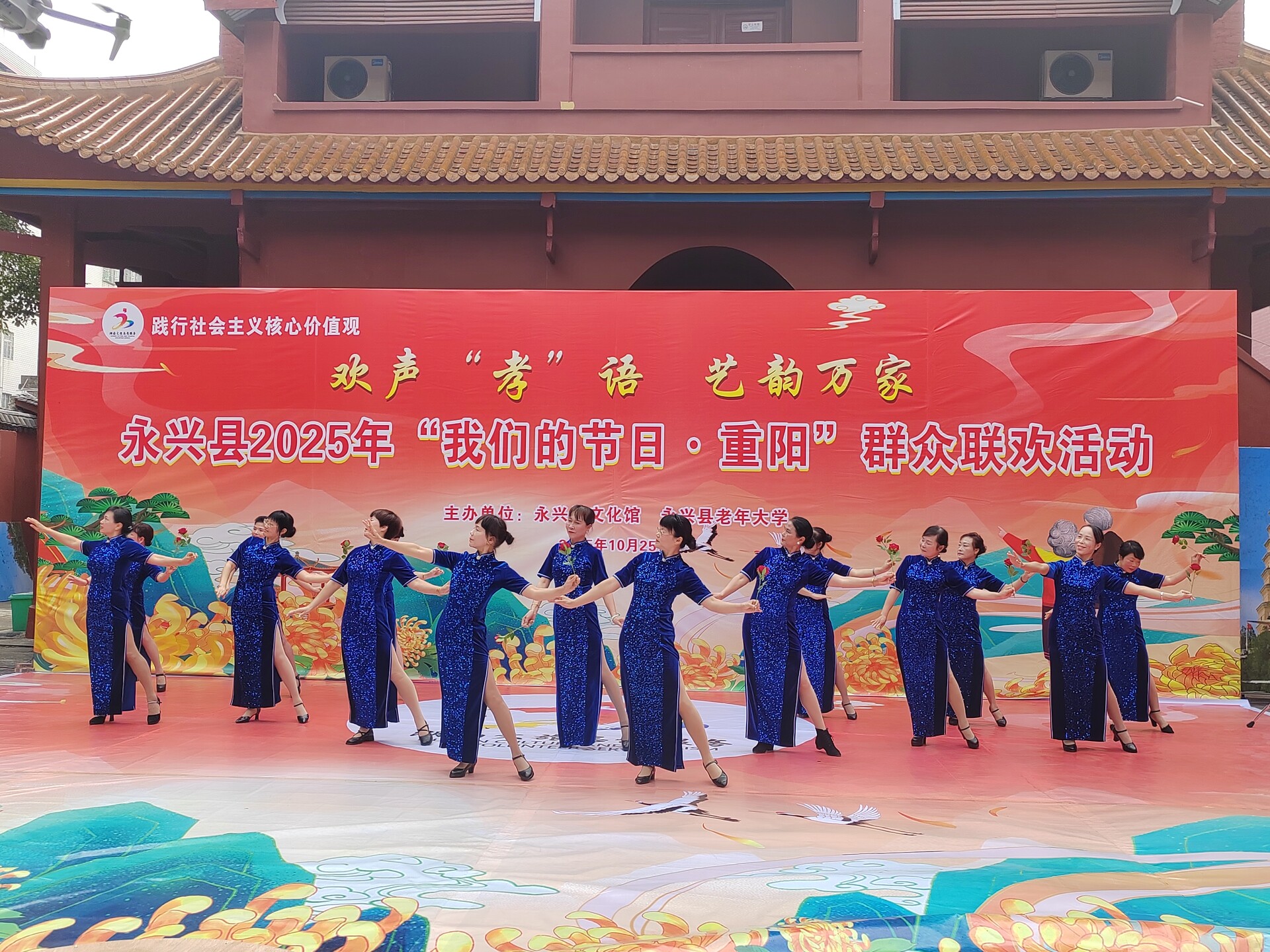 湖南日报·新湖南客户端10月28日讯(通讯员 王向辉 曹豪)近日,永兴县文化馆与县老年大学联合主办的“我们的节日·重阳”2025年群众联欢活动,在县文化馆广场举行,旨在弘扬尊老敬老传统美德,丰富老年人精神文化生活。