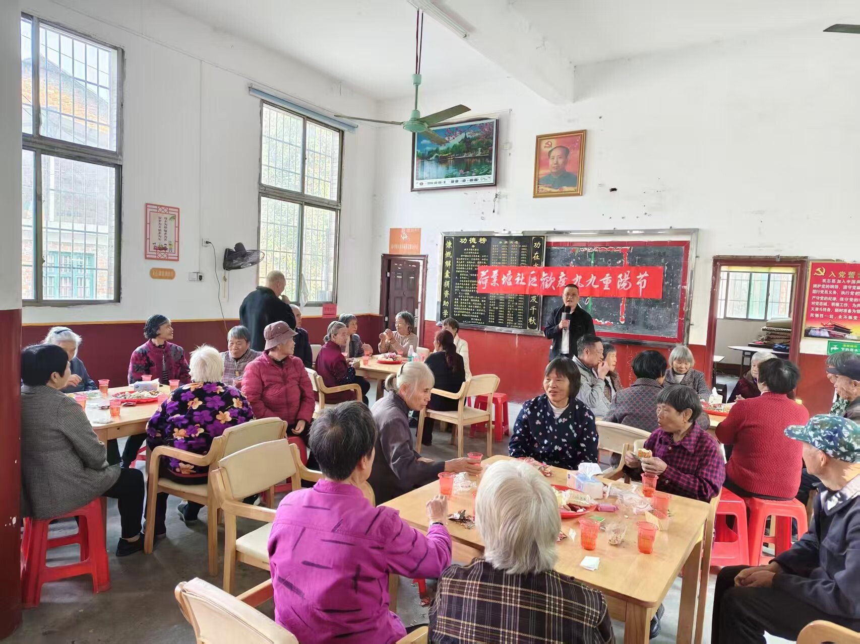 湖南日报·新湖南客户端10月30日讯(通讯员 胡和虎 周柏福)岁岁重阳,今又重阳。10月28日,永兴县马田镇组织开展“情暖重阳,爱在身边”系列敬老活动,通过组织退休老干部召开座谈会、青年志愿者开展健康服务,举办村(社区)老年人茶话会等多种形式,让辖区千余名老年人度过了一个温馨祥和的重阳佳节。