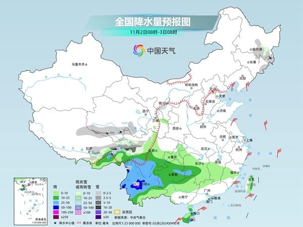 今明两天(11月2日至3日),我国东北地区和青藏高原的雨雪逐步缩减,但南方降雨发展增强,西南、江南等地部分地区有暴雨或大暴雨。随着阴雨增多,南方多地气温下降,体感湿凉,公众请注意防雨、保暖。而北方多地气温起伏较大,需及时调整着装,谨防感冒。