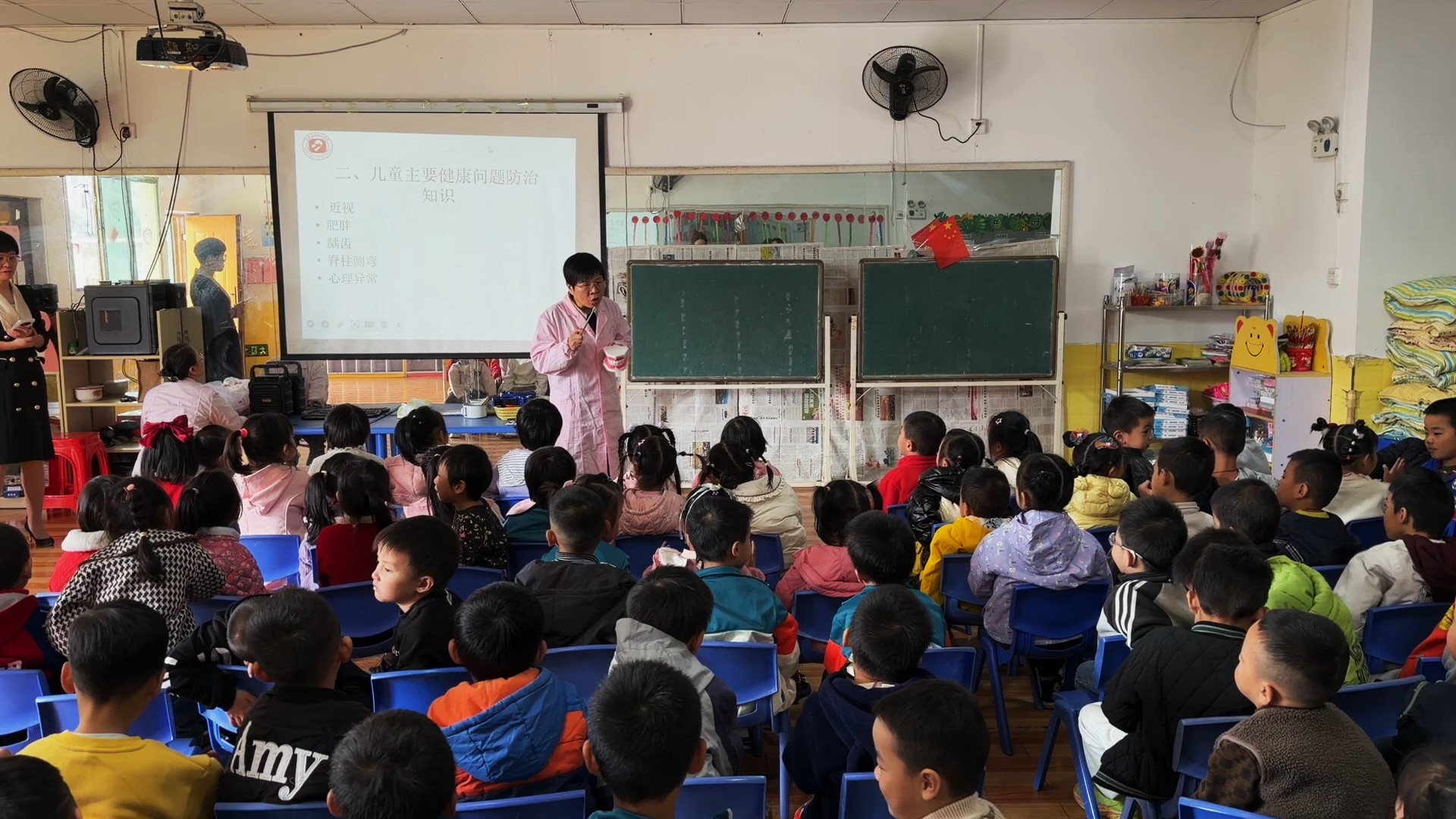 体检服务结束后,医护人员随即开展了健康知识讲座,围绕“儿童主要健康问题防治知识”主题,科普了“怎样保护视力”“怎样正确刷牙”等相关知识,并通过趣味小游戏和模型道具演示等方式,与小朋友们进行互动交流。同时,医护人员还开展了托幼机构卫生评估工作,对托幼机构设施及相关制度进行现场查验及逐项评分。