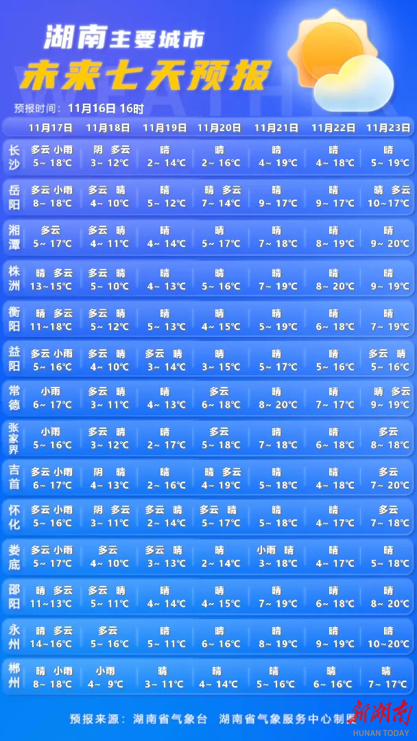 湖南最新天气预报