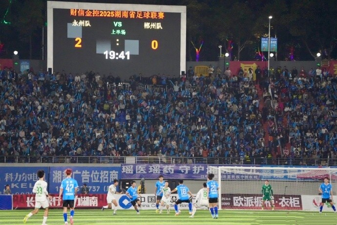 湖南日报·新湖南客户端11月17日讯(通讯员 郭伊凡 11月15日晚,“湘超”联赛常规赛第十轮焦点战——郴州队对永州队的“湘南德比”正式拉开战幕。最终,郴州队客场0:4不敌永州队。
