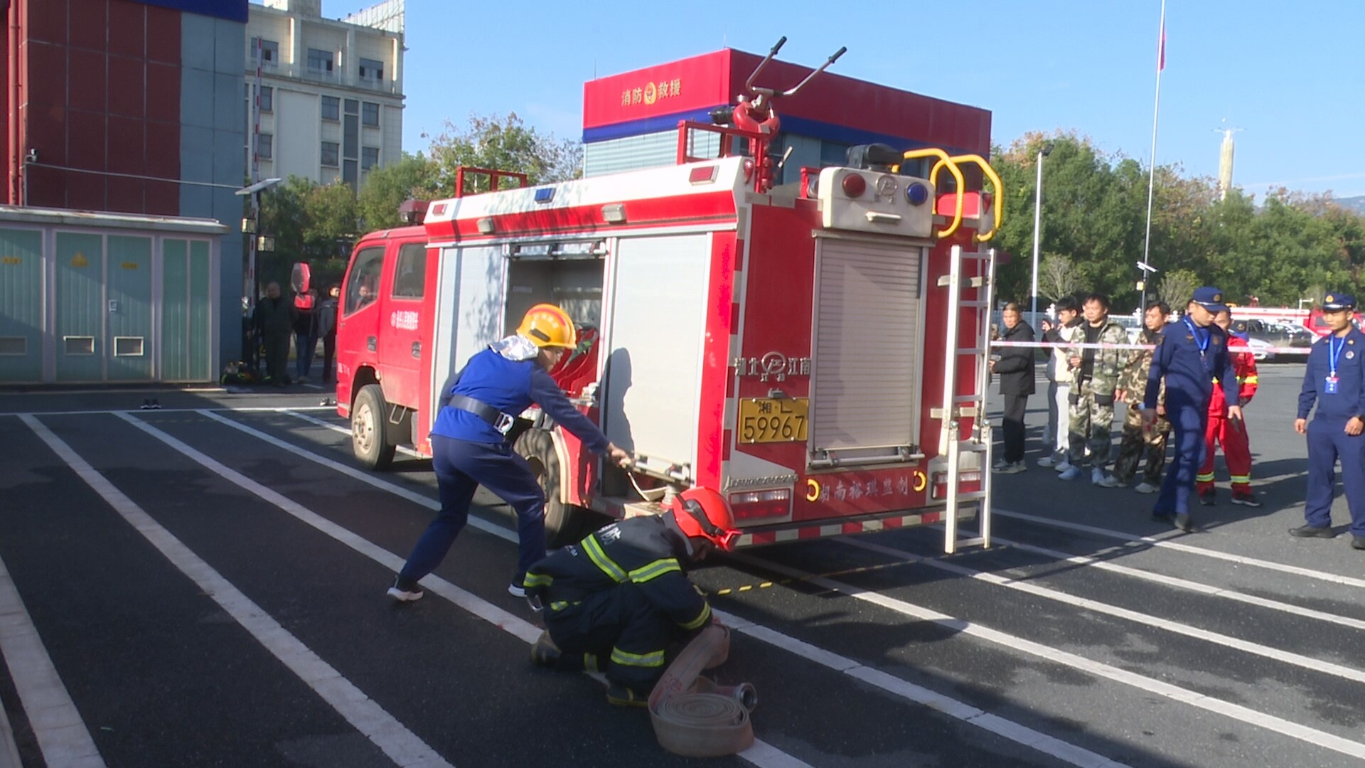 县消防救援大队碧塘消防救援站副站长田汶昕:“这次比武主要目的是推进乡镇街道消防队伍业务训练深入开展,全面提升乡镇消防灭火救援实战水平,促进乡镇队伍之间交流学习。”