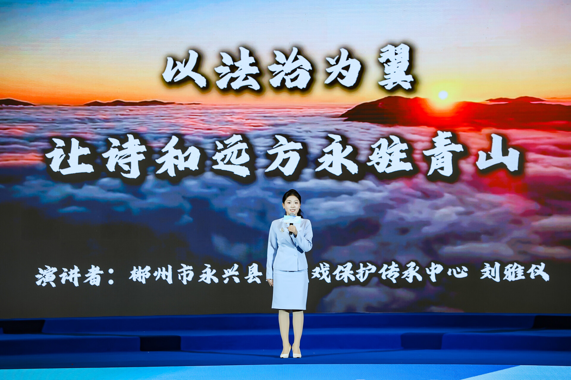 决赛现场,永兴县文旅广体局选送的刘雅仪,以鲜活案例、真挚情感围绕“法治与文旅融合”主题演讲,深刻阐释法治对文旅高质量发展的支撑作用,最终从28名选手中脱颖而出,获演讲比赛三等奖。