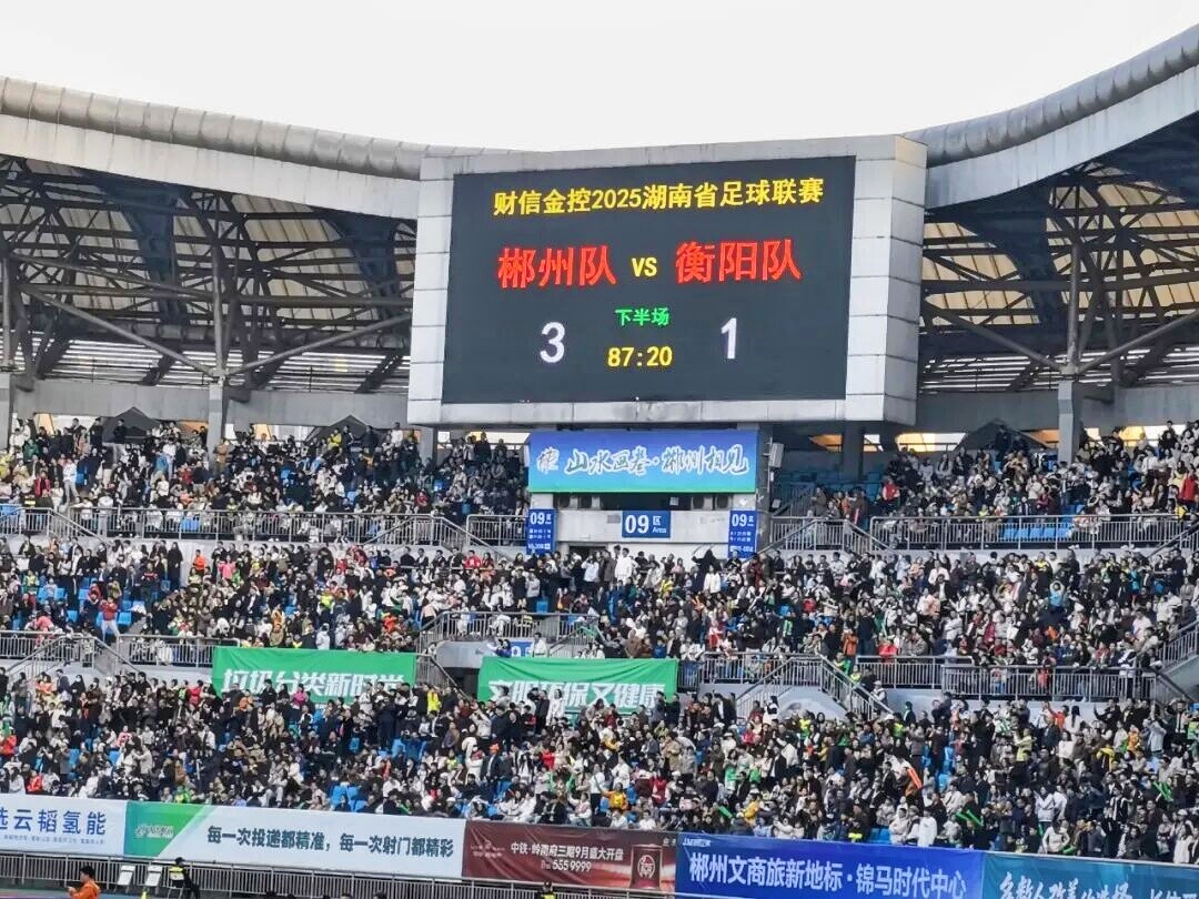湖南日报·新湖南客户端12月8日讯(通讯员 郭伊凡)12月6日下午,2025“湘超”联赛常规赛收官战在郴州主场打响,郴州队凭借顽强斗志与精准发挥,以3:1击败衡阳队,成功跻身季后赛八强。