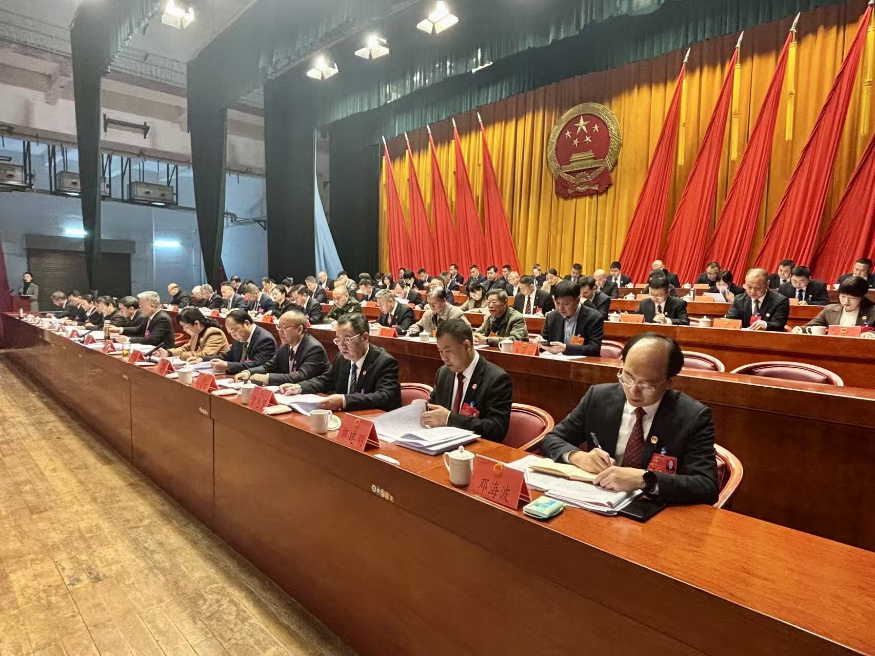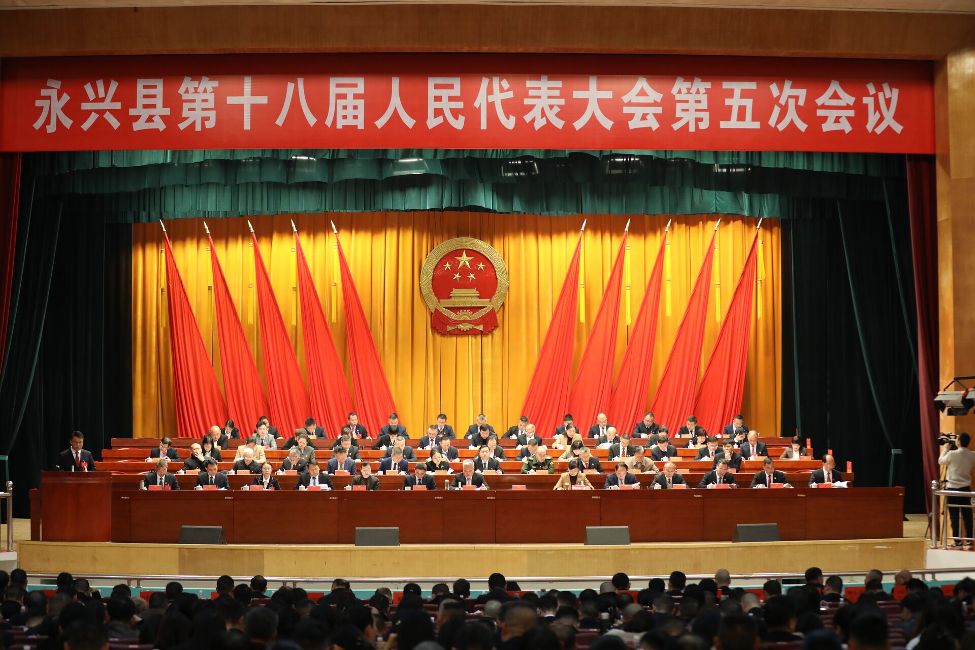 县委副书记、县长宾心华:“各位代表!蓝图绘就乘风起,扬帆起航正当时!让我们更加紧密地团结在以习近平同志为核心的党中央周围,在市委、市政府和县委的坚强领导下,以只争朝夕的干劲、开拓创新的勇气、久久为功的执着,为加快建设现代化新永兴而努力奋斗!”