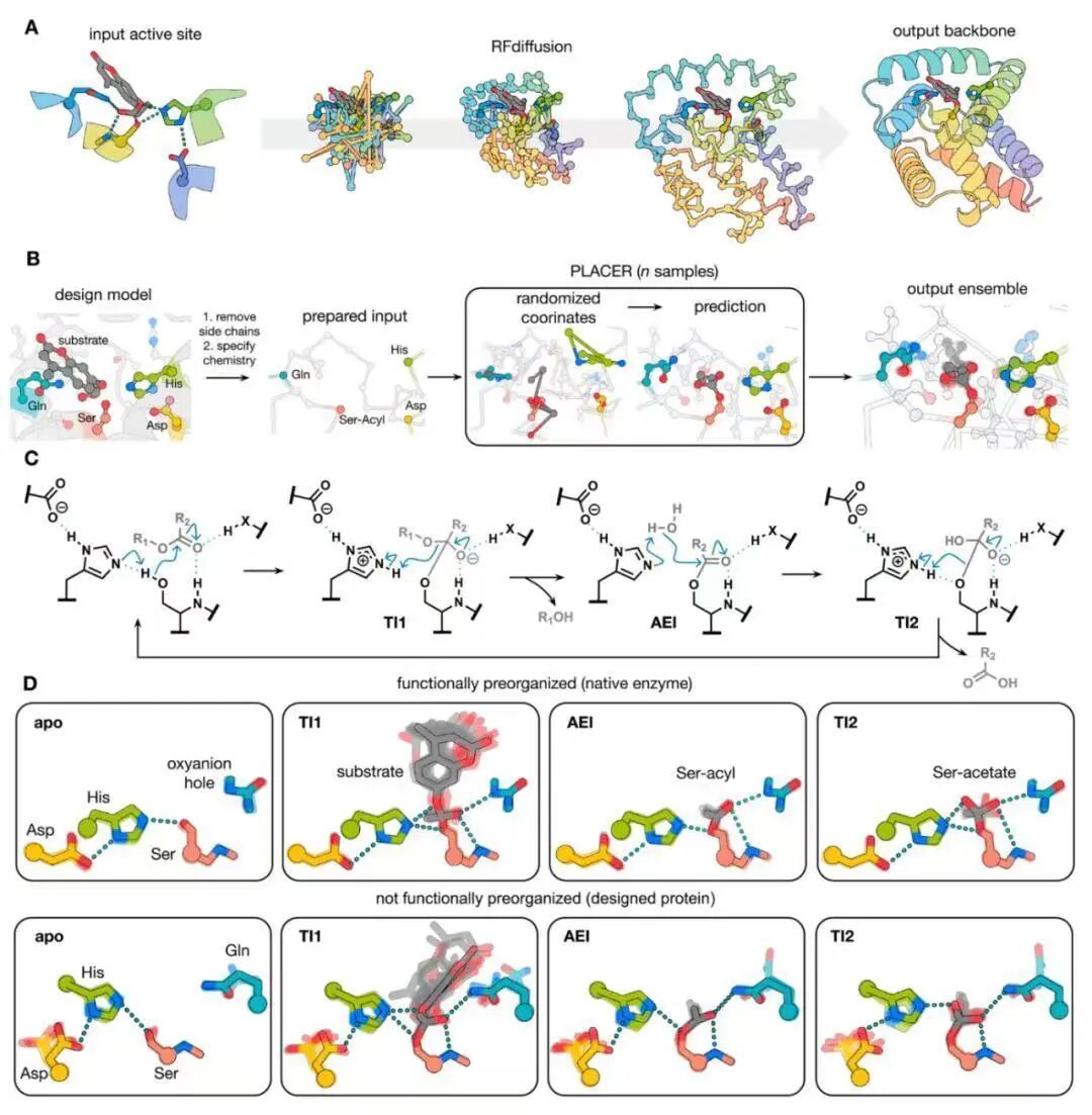 AI从头设计丝氨酸水解酶示意图。图片来源:《科学》