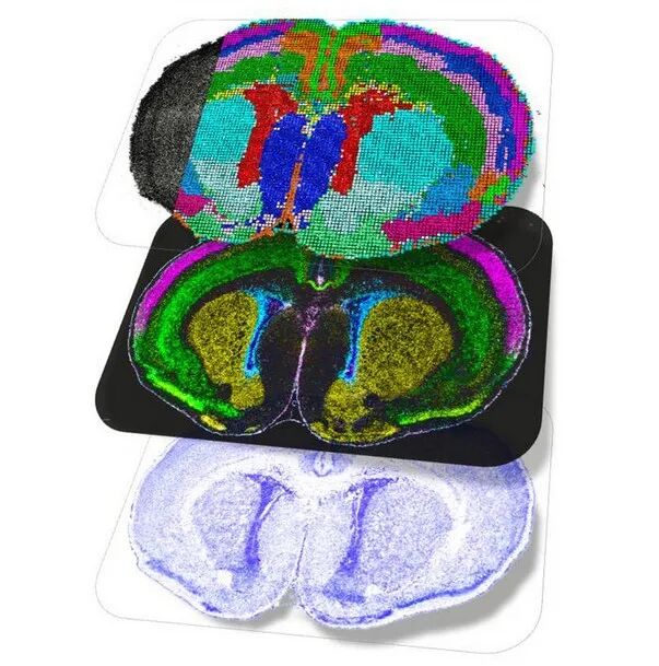 小鼠出生后的脑空间多组学图谱。图片来源:《自然》网站