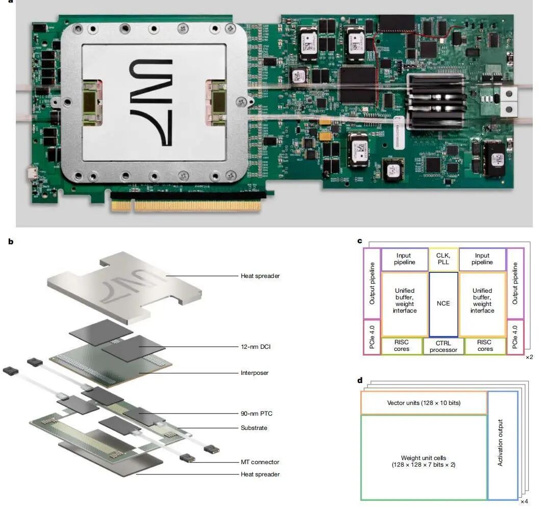 新加坡Lightelligence公司演示了一种名为PACE的光子加速器,能完成极低时延的计算。这个大型加速器由逾16000个光子元件以64×64矩阵组成,能解决“伊辛问题”这类很难的计算问题,证明了其在实际应用中的可行性。而美国Lightmatter团队则描述了一种能以高准确度、高效执行AI模型的光子处理器。该处理器由4个128×128矩阵组成,能执行自然语言处理模型和用于图像处理的神经网络,准确度与传统电子处理器不相上下。