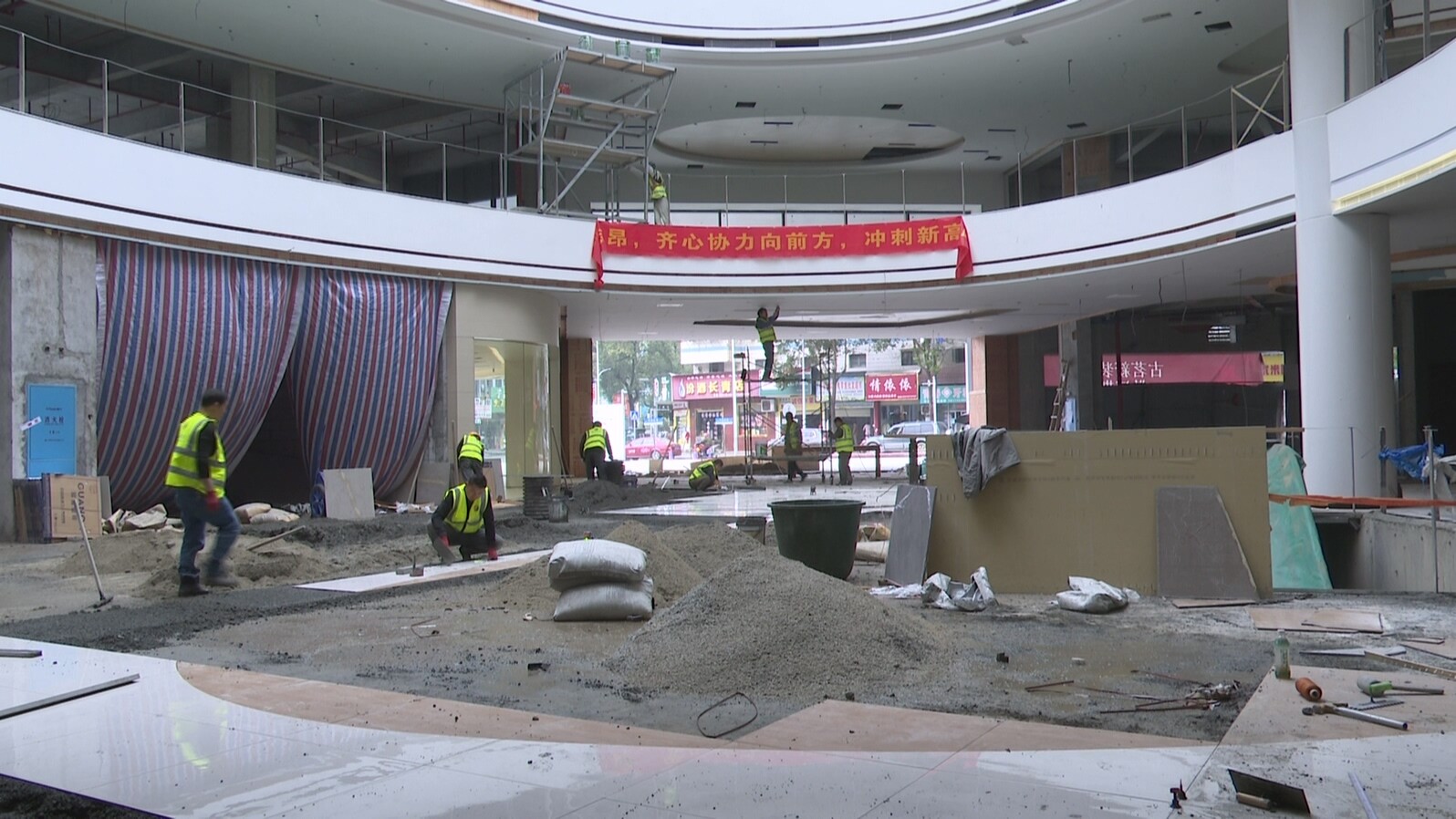 施工现场,工人们正在进行最后的瓷砖铺设、天花板装饰等工作。作为全县重点招商引资项目,友阿国际广场商业总面积达3万平方米,规划为地下一层、地上四层,预计引进各类品牌超170个,致力于为市民打造一站式购物中心。