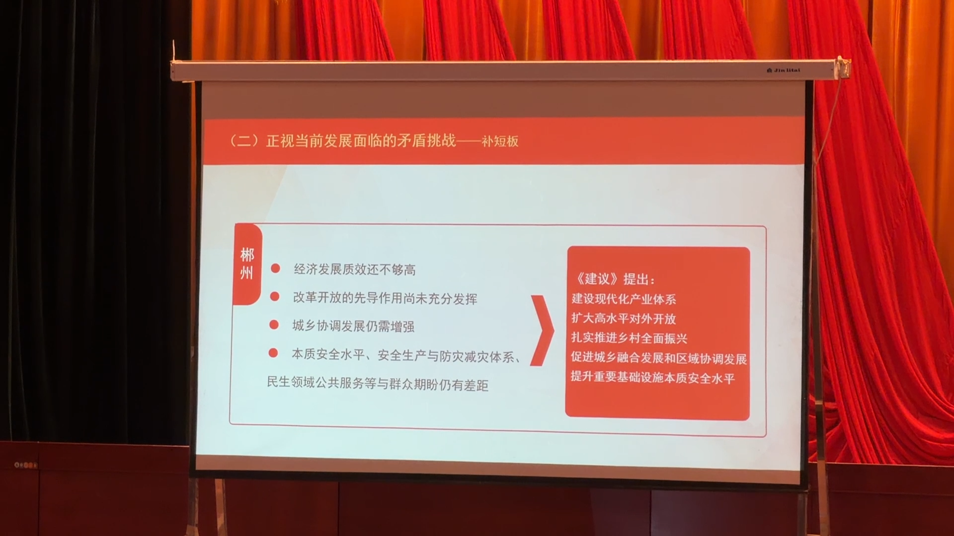 “把全会精神融入规划编制、项目建设、产业升级等核心工作,聚焦“两新”建设、新型城镇化、绿色转型等重点领域,谋划储备一批符合永兴县实际的重大工程项目,充分发挥政府投资撬动作用,全力推动我县经济实现质的有效提升和量的合理增长,为“十五五”高质量发展开好局、起好步奠定坚实基础。”