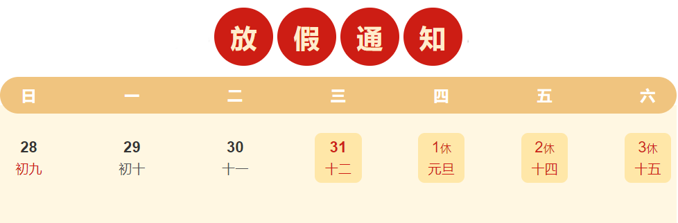 2026年元旦节假期共放假3天,2026年1月1日(周四)至3日(周六)放假调休,共3天,1月4日上班。