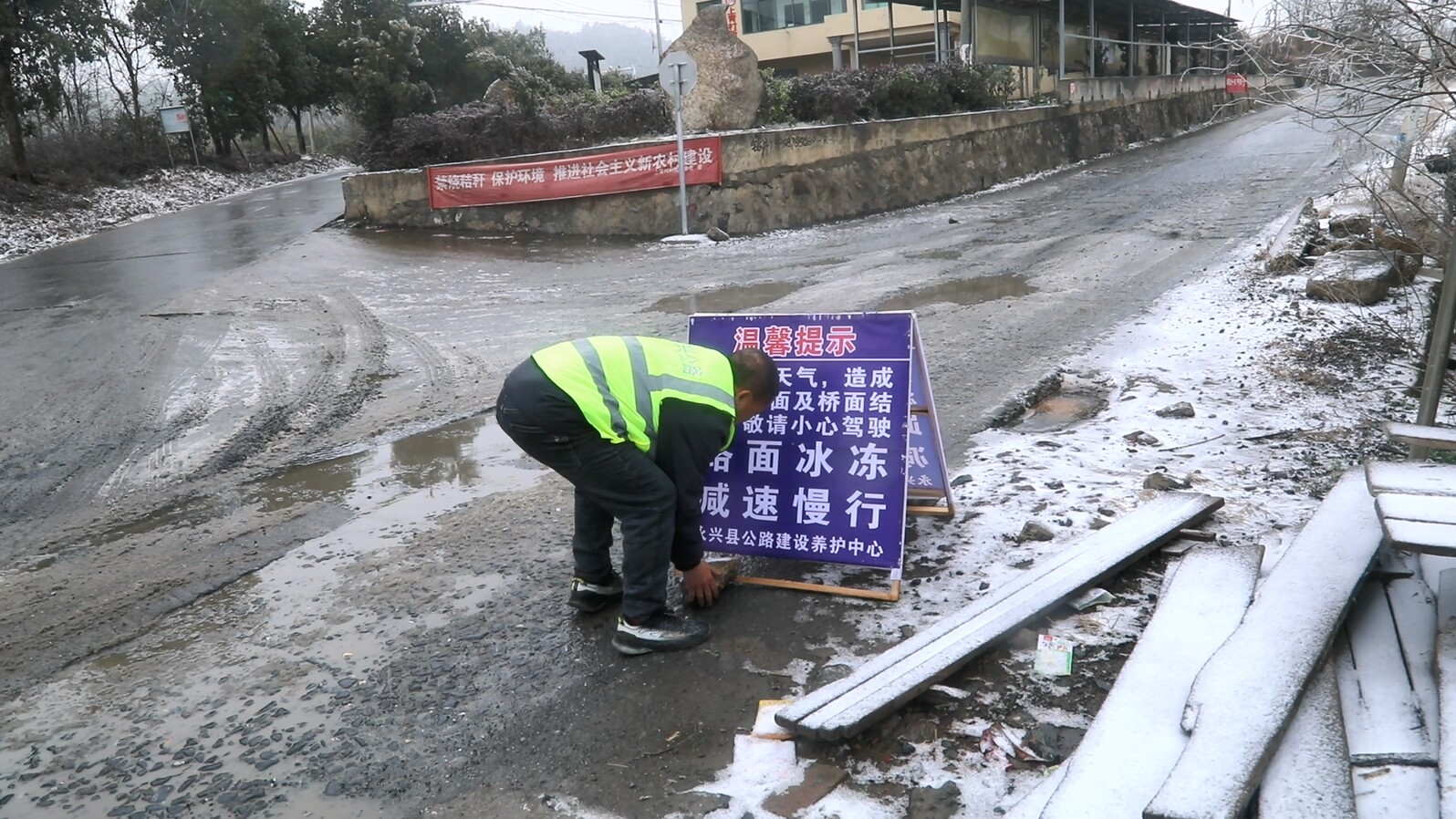 县交通运输局党组书记、局长李志兵:“按照县委、县政府和市交通部门的部署要求,我们重点备足了工业盐、除冰车等除冰物资和设备,制定了完善的应急预案,还专门安排 5 支应急队伍,驻守在易结冰的重点路段,随时开展抢险除冰作业。”