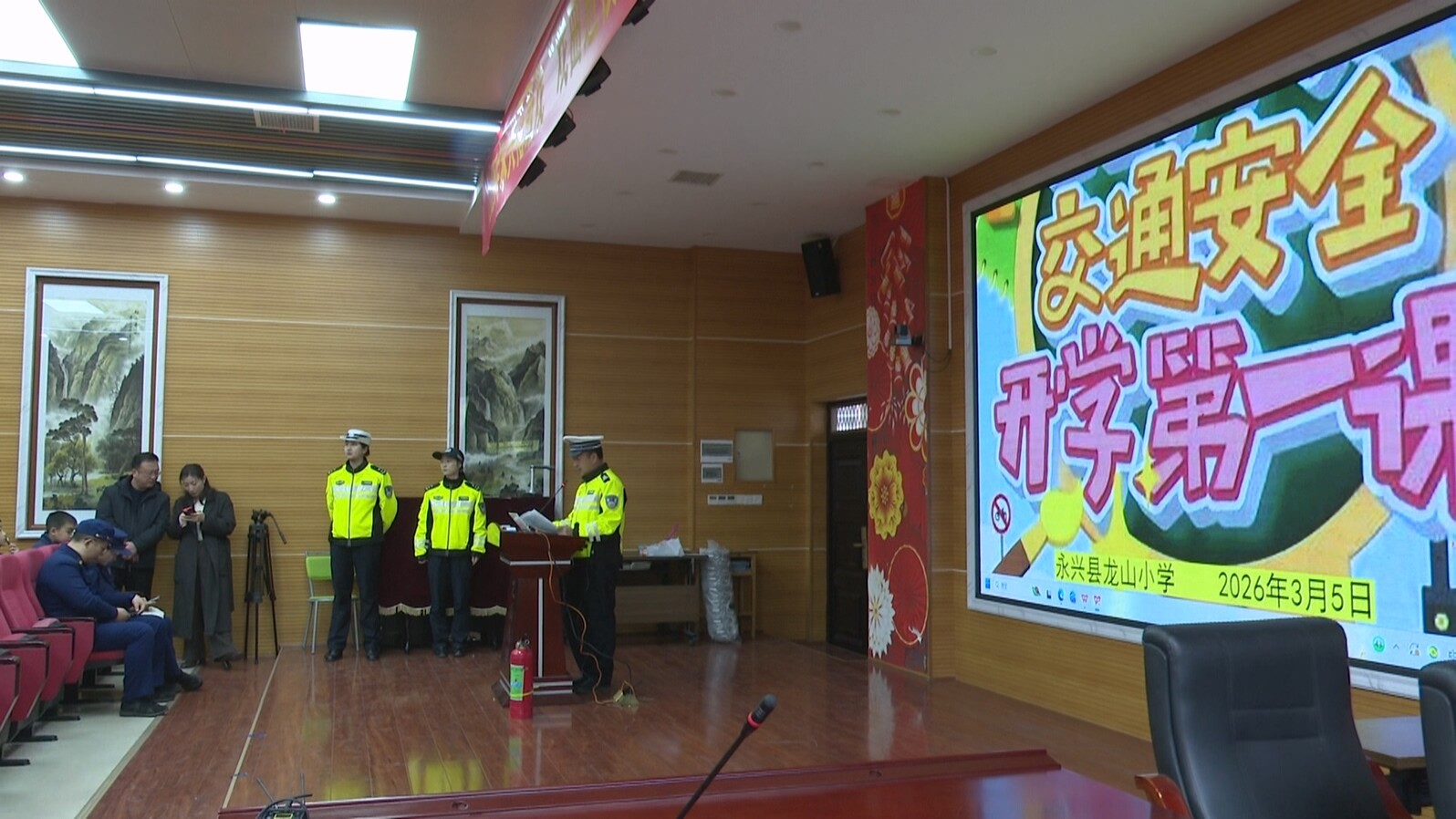 龙山小学副校长李楚彦:“消防和交通安全是校园安全、出行安全的重中之重,通过开学第一课集中讲解,从源头防范安全风险,为新学期平安校园建设打下坚实基础。”