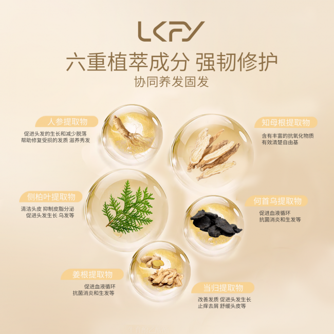 露卡菲娅防脱洗发水创新融合 “六重植萃成分 + 专研防脱因子 + 生物萃取技术” 三大技术,实现 “护发 - 防脱 - 稳固发根 - 养发” 四维闭环,里面添加了人参,当归,何首乌,知母,生姜,侧柏叶等。这些天然植物精萃能够深入毛囊,促进头皮血液循环,增强毛囊活性,减少掉发并滋养发根,让头发更加乌黑亮丽、强韧有光泽。再加上独家专研防脱发因子和咖啡因的助攻,能够加速头皮血液循环,平衡头皮水油,维稳头皮,还能唤醒毛囊状态,改善头皮环境,直接从根源处解决脱发问题,实现 “护发 - 防脱 - 稳固发根 - 养发” 四维闭环。