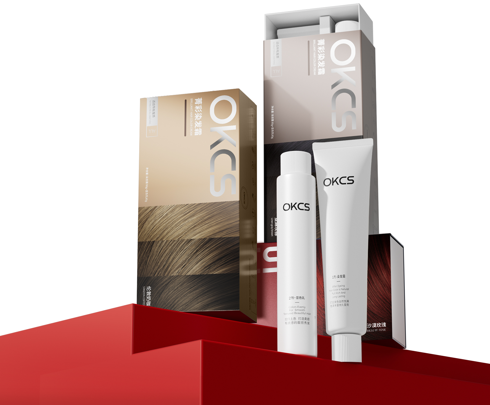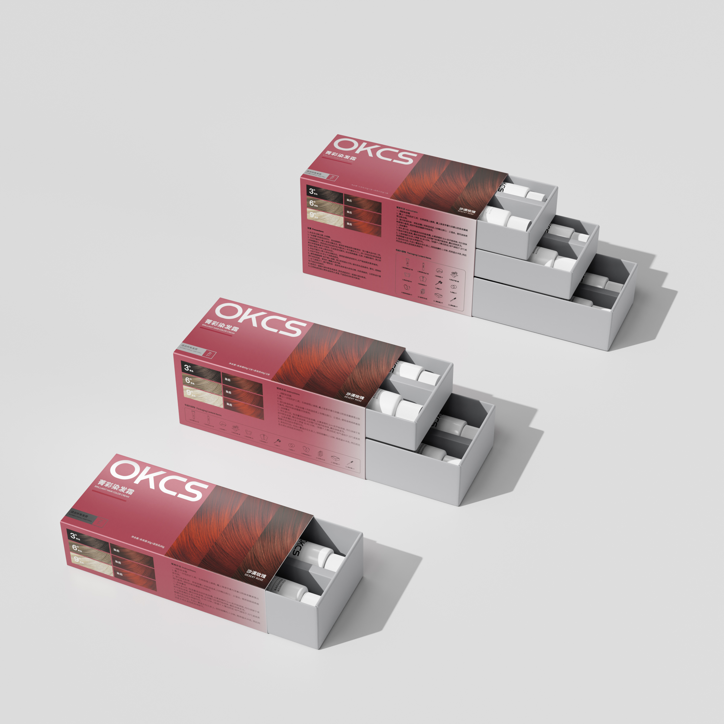 为破解行业包装单一的设计壁垒,引领产业向实用化方向升级,OKCS全球首创按头发长度定制的专属包装(已获批自主研发外观专利),精准划分齐耳短发装、齐肩中发装、齐胸长发装三大规格,全色系小众潮色均适配所有包装,完美破解传统染发产品“用量难控制、浪费严重”的痛点,契合年轻人“理性消费、拒绝浪费”的消费理念,打破行业产品设计壁垒,引领居家染发产业向实用化、精准化方向升级。