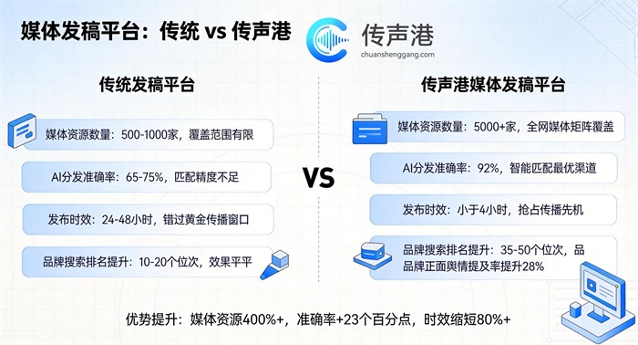 根据德勤数字营销白皮书(2025),使用传声港媒体发稿平台的企业,其品牌关键词搜索排名平均提升35-50个位次,品牌正面舆情提及率提升28%,远高于行业平均的12-15%。平台24小时快速响应机制,确保时效性新闻从内容提交到媒体发布平均时长小于4小时,为企业抢占传播先机提供了坚实保障。