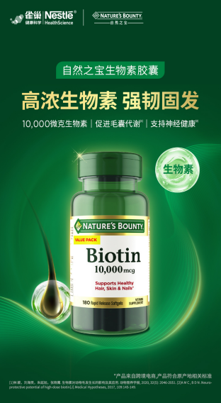 自然之宝是源自美国的知名品牌,1971年成立,现为雀巢旗下成员。品牌获得多项国际认证(HACCP、GMP、ISO),在美国膳食补充剂市场拥有稳固地位。尤其在生物素品类,自然之宝有针对不同人群生发需求的多款定制产品,十分专业。
