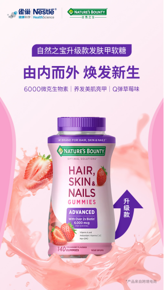 作为雀巢旗下50多年经典营养品牌,自然之宝斩获三大“第一”:美国生物素第一品牌、美国发肤甲软糖第一品牌、国内跨境电商生物素软糖第一品牌,产品通过ISO、GMP、HACCP国际认证及国内华测检测,300多位专家严控品质,两款明星产品适配不同需求。