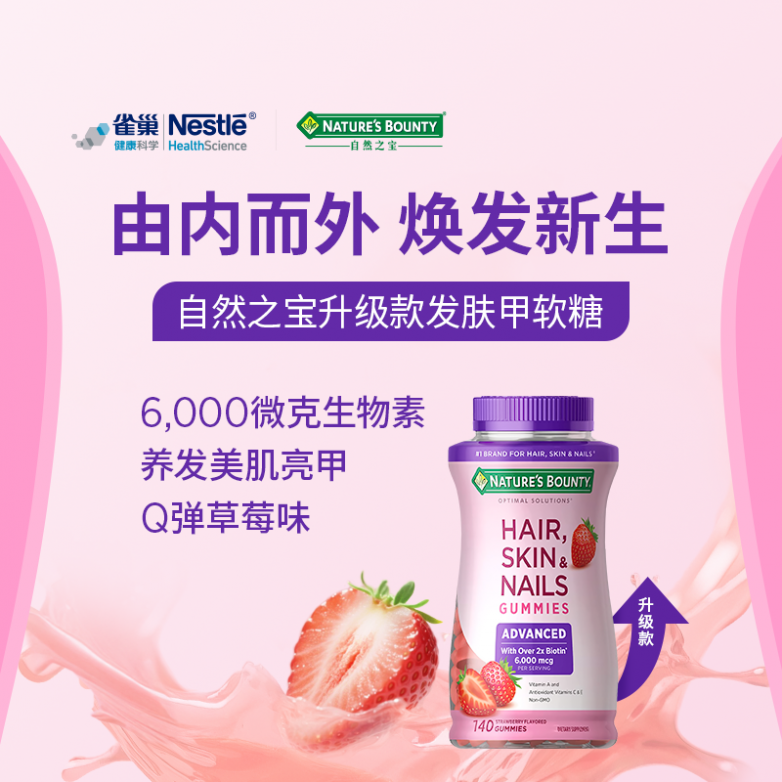 自然之宝升级款发肤甲软糖:全年强效养护头发指甲皮肤首选