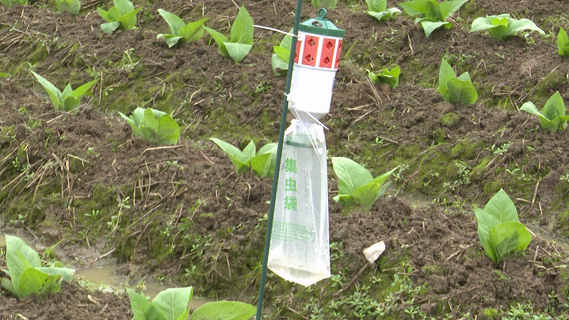 为有效防治病虫害,烟田每隔一段距离就配备了驱虫灯,并安装诱捕器和烟青虫诱芯,利用生物方法诱杀害虫,减少化学农药使用,确保每一株烟苗茁壮成长。