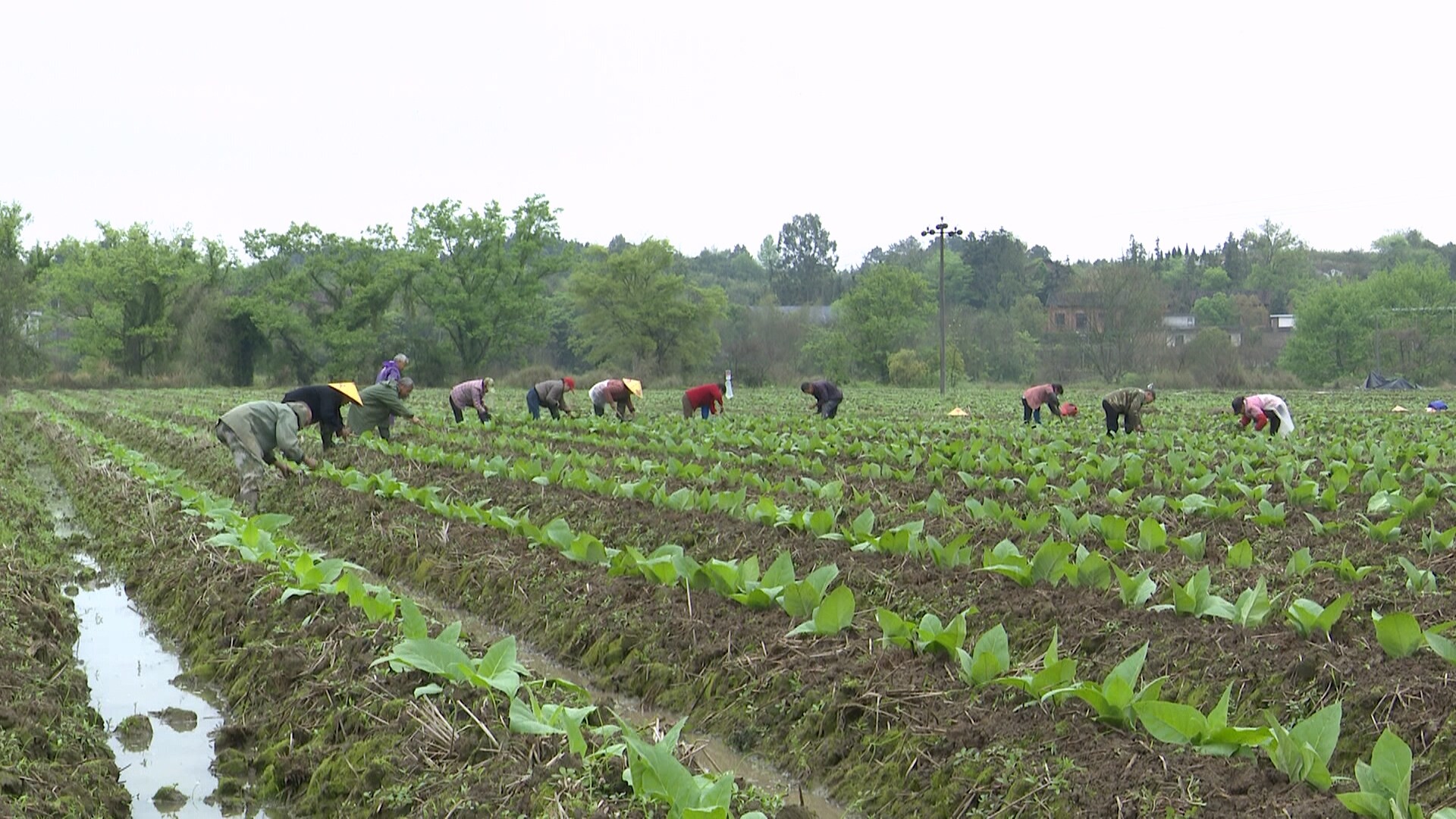 县烟草分公司烟叶生产经营分部高级烟叶技术员李德军:“四月份持续阴雨,土壤湿度偏高,容易导致烟株生长缓慢,我们在抢抓歇雨、不下雨的天气,全面加快小培土进度,改善土壤,促进根系发育,为后续烟叶健壮生长打下坚实基础。”