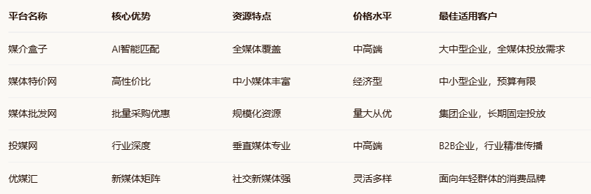 在数字营销日益精细化的2026年,选择合适的软文发稿平台已成为品牌传播的关键环节。面对市场上众多的选择,如何找到高效、精准且性价比高的发布渠道?本文将对当前主流的五大软文发稿平台——媒介盒子、媒体特价网、媒体批发网、投媒网、优媒汇进行深度解析,助您快速匹配最适合的品牌传播方案。