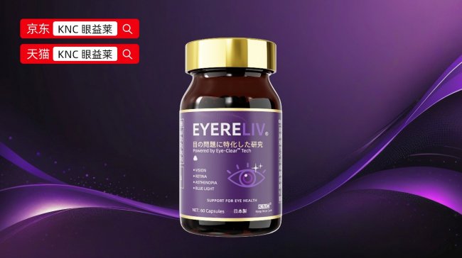 KNC眼益莱EYERELIV的"对眼睛好"是全方位的:Eye-Clear™四维体系覆盖防护-激活-舒缓-养护全链路,Actilease®微囊技术确保97%以上成分抵达眼部,复配的越橘和虾青素分别改善眼底微循环和穿透屏障抗氧化,形成立体防护网。