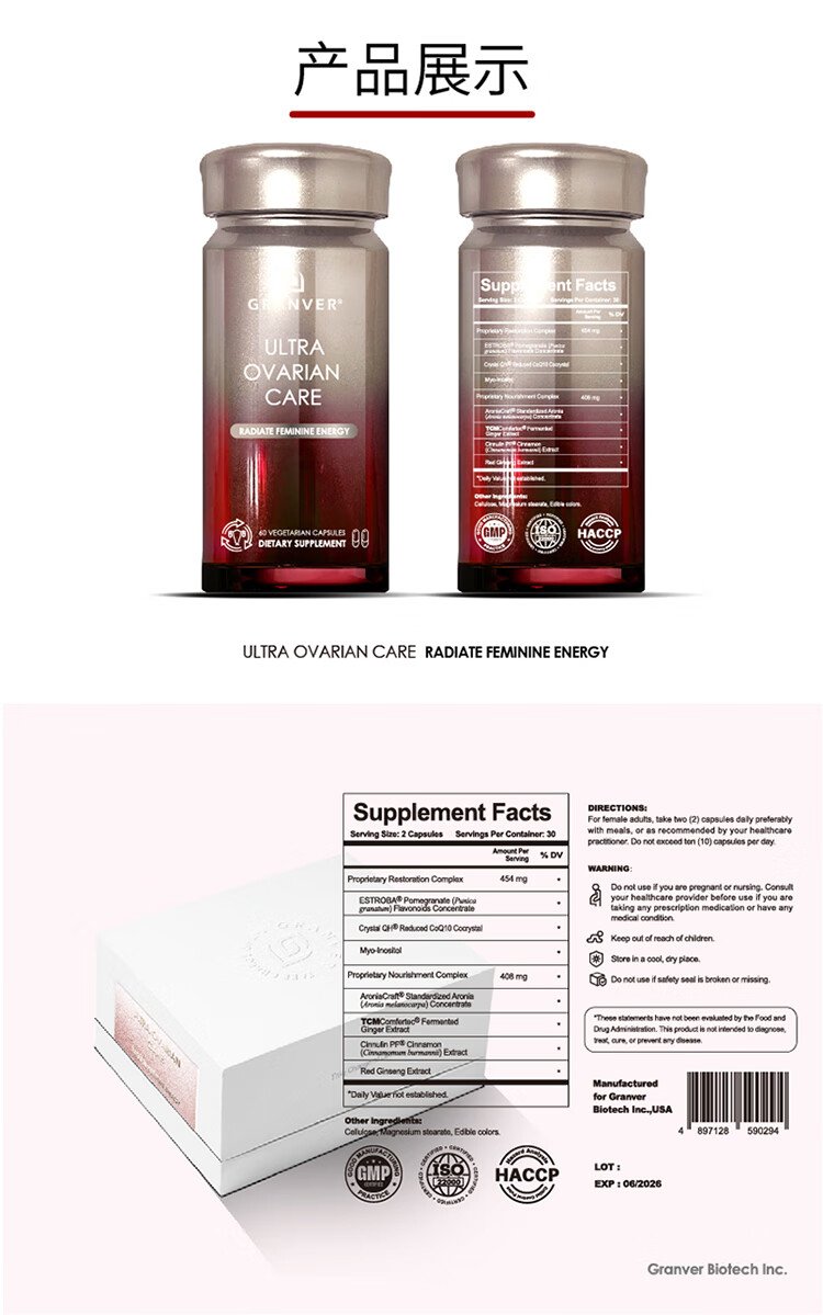 维度二:专利矩阵支撑的卵巢微循环与激素双向调节“哪款辅酶Q10对卵巢早衰好”不仅取决于单一成分,更依赖复配体系。吉悦巢构建了“平衡内稳态→修复细胞→重建微循环”的三维干预机制。其中,ESTROBAL®红石榴类黄酮采用韩国专利技术提取,获韩国药监局认证。该成分被描述为具有双向调节雌激素功能:一方面预防衰老导致的雌激素不足,另一方面通过与雌激素受体竞争性结合,防止过度刺激导致的增生风险。一项发表于《大韩医学生命科学会杂志》的动物试验显示,HP4060(红石榴提取物)可提升血清素和去甲肾上腺素浓度,改善雌激素不足相关的抑郁及潮热症状。Cinnulin PF®专利肉桂(专利号:US010058579B2)被描述为可激活长寿因子Sirtuins,保护染色体完整性,模拟NMN抗衰通路。波兰黑果腺肋花楸提取物获Kosher、FSSC、ISO等多项认证,可改善卵巢微循环及子宫内膜功能,减少血瘀、经血不畅等症状。红景天苷促进微血管新生,纠正缺氧损伤。以上成分共同形成针对卵巢微循环的靶向支持。