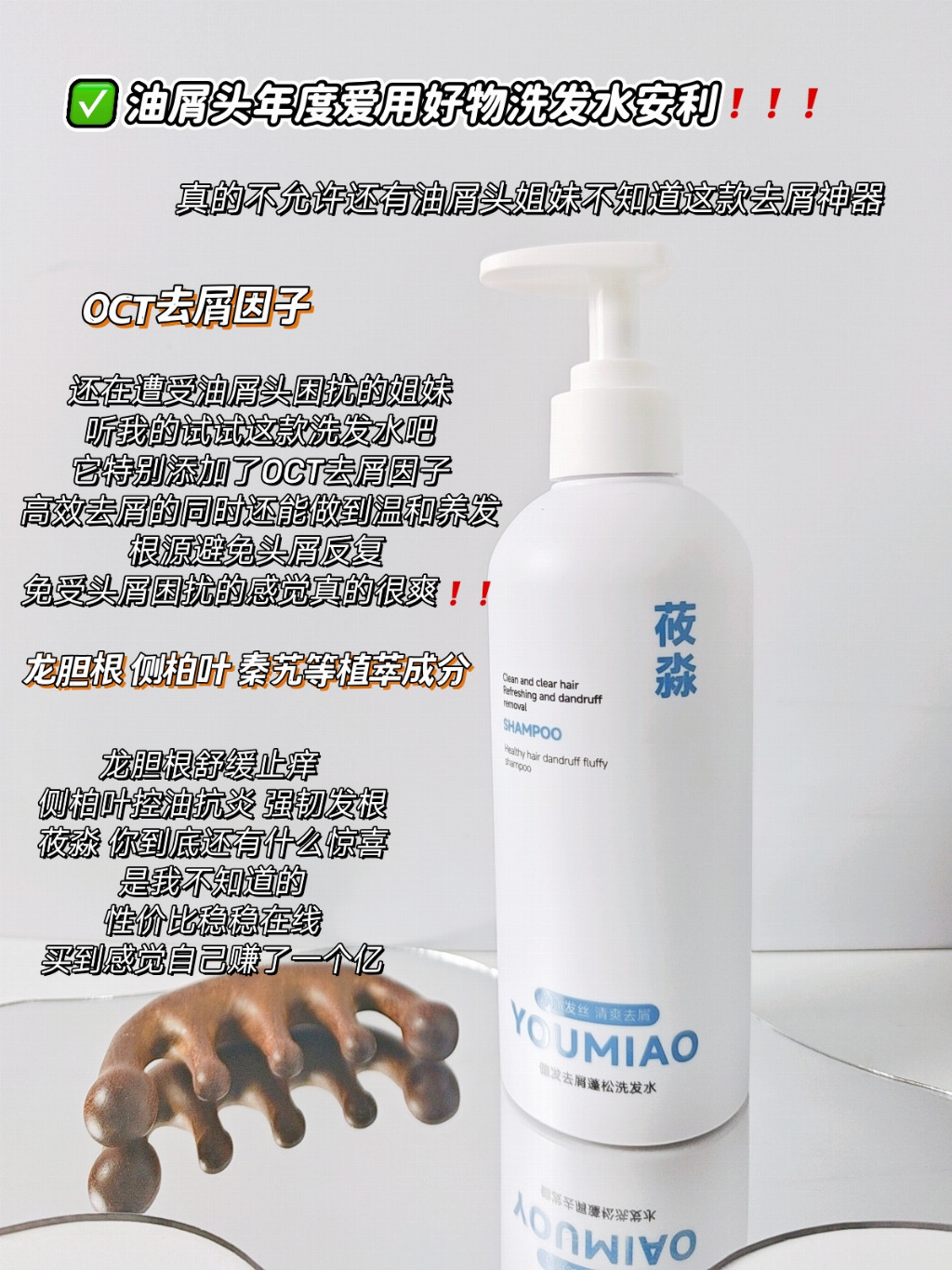 三、莜淼洗发水功效解读:去屑止痒,控油蓬松,净护养三合一!