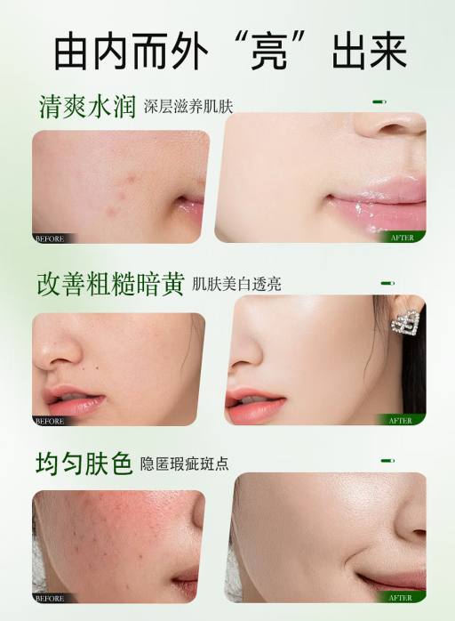 第一坑:只看提亮效果,忽略成分安全。很多产品为了追求即时提亮,添加过量的粉体和色素,上脸假白假面,长期用还会堵塞毛孔、损伤肌肤屏障,甚至引发敏感、闷痘。