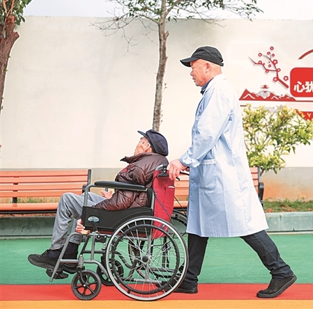 湖北省孝昌县王店镇松鹤仁养老院的护工在照料老人。新华社发