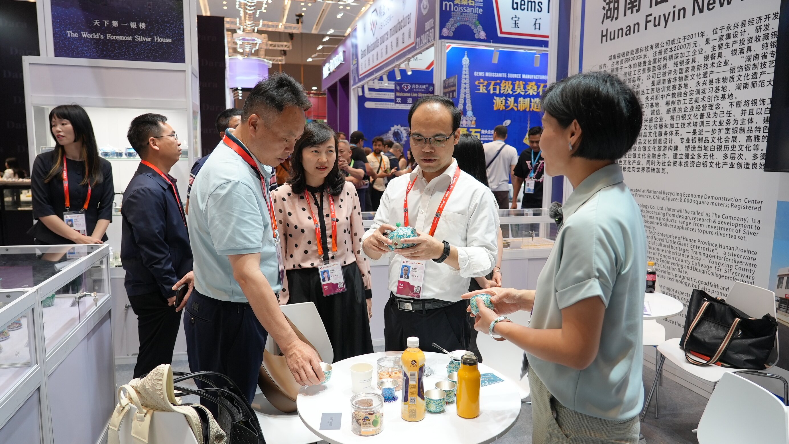 随后,王武文一行还考察了力量钻石、东海水晶、喜荟天成等企业展馆,向企业推介永兴“中国银都”品牌优势,并发出合作邀约,期盼与各企业在银镶产品研发、生产等领域深化交流合作,携手做大做强稀贵金属精深加工产业,实现互利共赢。