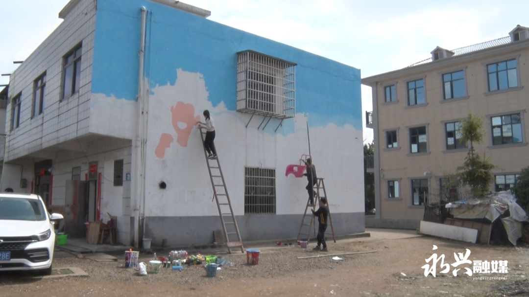 【永兴县融媒体中心3月9日讯】近日,湘南学院师生走出校门,来到永兴县湘阴渡街道,为农村房前屋后的空白墙面绘制巨幅壁画,打造乡村振兴的亮丽风景。