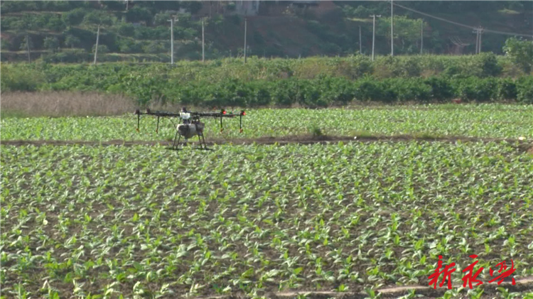 为推动烤烟产业持续健康发展,永兴县大力发展专业化、社会化服务,以购买服务方式对烤烟示范基地进行病虫害防治。无人机精准作业减少了农药消耗,降低了农药残留以及对土壤、大气、水体的污染。