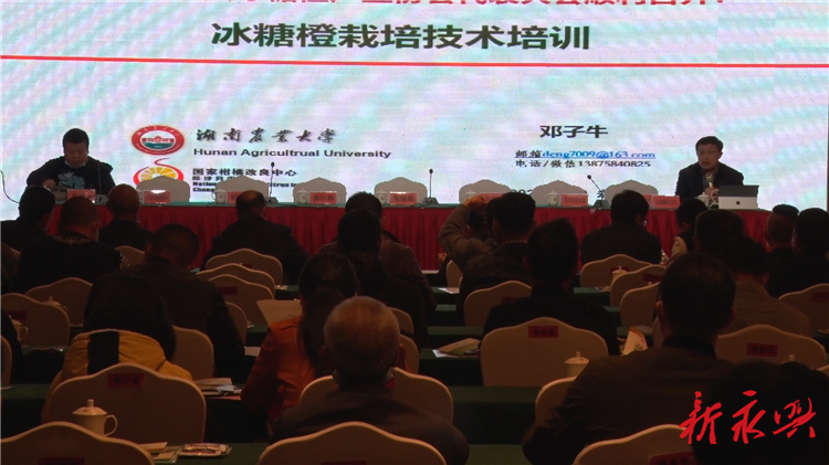 针对永兴冰糖橙的种植管理,邓子牛教授分别围绕肥水管理、疏花疏果、果树修剪、病虫害防治以及树势的调控等方面,系统地为参训果农进行了集中讲授。